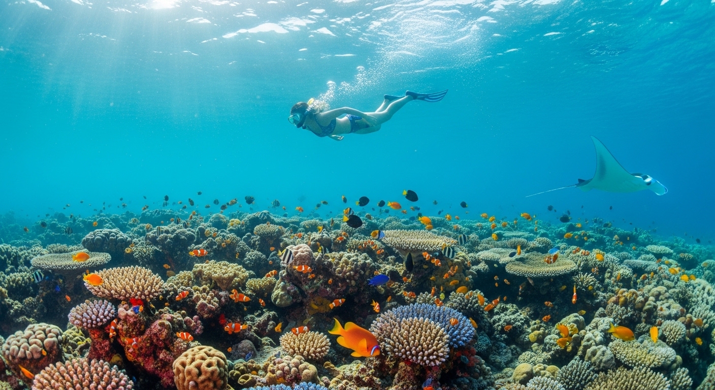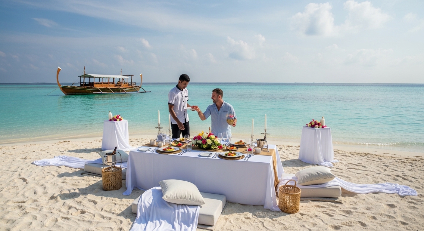 Escape to the crystal-clear waters of the Maldives with our exclusive 3 Nights / 4 Days luxury package by Evoqué by Travellers Choice. Discover vibrant coral reefs while snorkeling, watch playful dolphins glide alongside your boat, and savour a private lunch on a secluded sandbank. End each magical day with a night fishing trip — your fresh catch beautifully prepared for dinner. Where turquoise dreams meet timeless luxury.